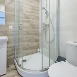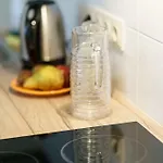 Riga Airport Jurmala Apartments hebben strijkfaciliteiten en een strijkijzer met strijkplank, samen met moderne opties zoals breedbandinternet en een TV. Dit appartement is ook ingericht met een bureau. Er is een privébadkamer met een apart toilet, een badkuip en een douche, en dergelijke gemakken zoals een haardroger en handdoeken.